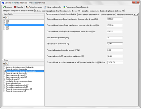 - Realization of electric calculation at intervals of at least 60 minutes from the use of typical load curves, allowing the obtaining of loss of demand and loss of energy directly from the loss curve of each component.